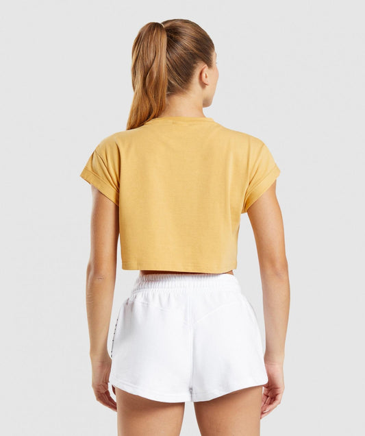 GYMSHARK LEGACY GRAPHIC CROP TEE YELLOW MARŠKINĖLIAI