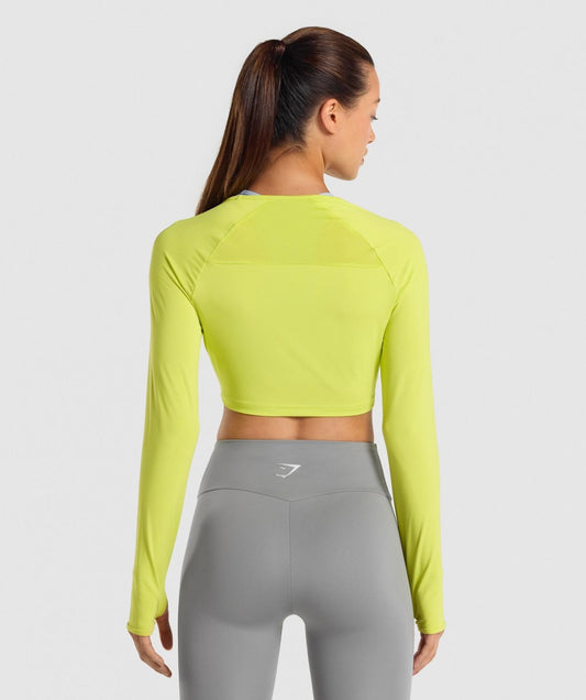 GYMSHARK TRAINING LONG SLEEVE CROP TOP YELLOW SPORTINĖ PALAIDINĖ