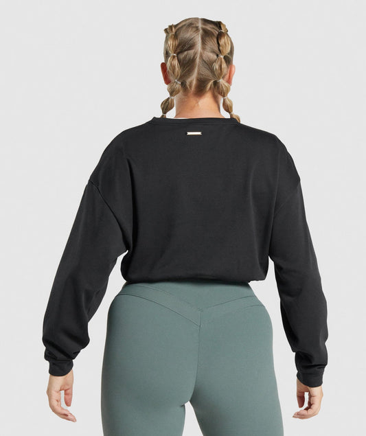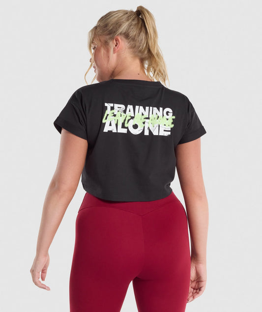 GYMSHARK TRAINING ALONE GRAPHIC CROP TOP BLACK SPORTINĖ PALAIDINĖ