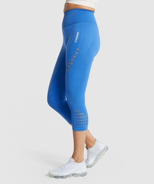 GYMSHARK ENERGY SEAMLESS CROPPED BLUE LEGGINGS TAMPRĖS