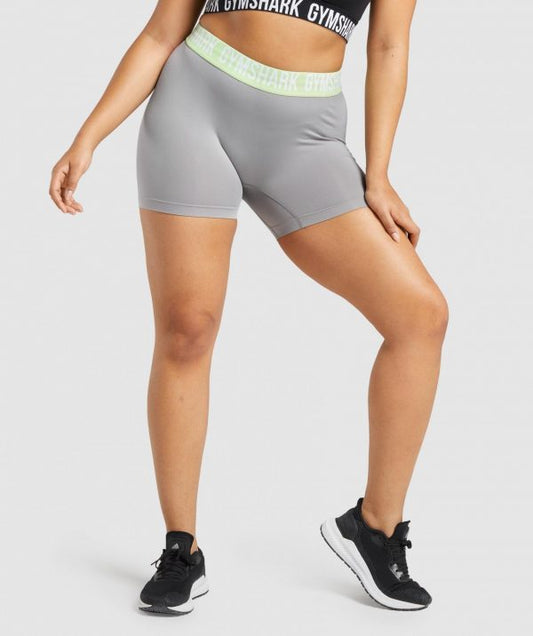 GYMSHARK FIT SEAMLESS LIGHT GREY/LIME GREEN ŠORTAI