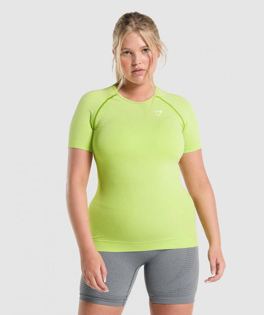 GYMSHARK VITAL SEAMLESS LIME LEGGINGS + T-SHIRT SET KOMPLEKTAS