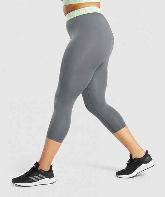 GYMSHARK FIT SEAMLESS CROPPED LEGGINGS GREY/GREEN TAMPRĖS