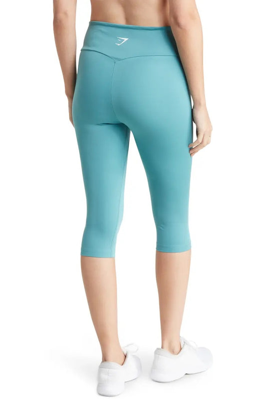GYMSHARK TRAINING CROPPED FAUNA TEAL LEGGINGS TAMPRĖS