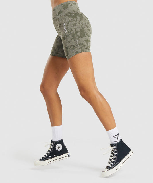 GYMSHARK ADAPT CAMO SEAMLESS ARMY GREEN ŠORTAI