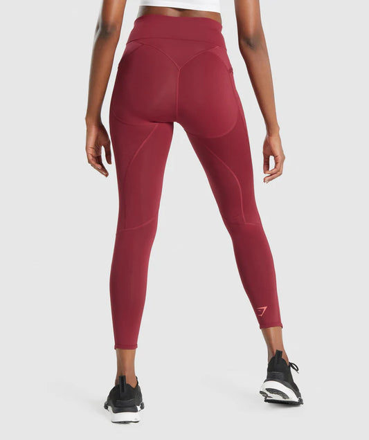 GYMSHARK PULSE MESH LEGGINGS DARK RED TAMPRĖS