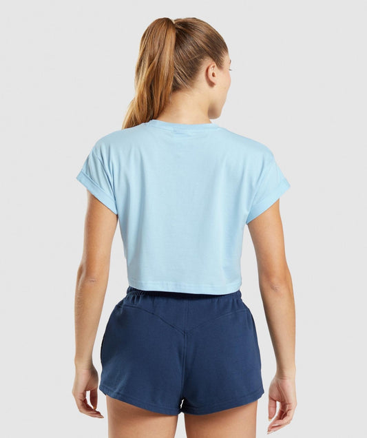 GYMSHARK LEGACY GRAPHIC CROP TEE BLUE MARŠKINĖLIAI