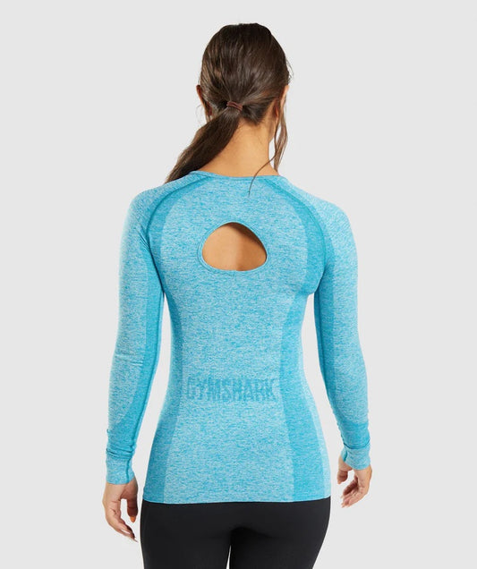 GYMSHARK FLEX LONG SLEEVE TOP ATLAS BLUE MARL SPORTINĖ PALAIDINĖ