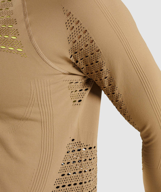 GYMSHARK ENERGY SEAMLESS HOODIE BISCOTTI BROWN SPORTINĖ PALAIDINĖ