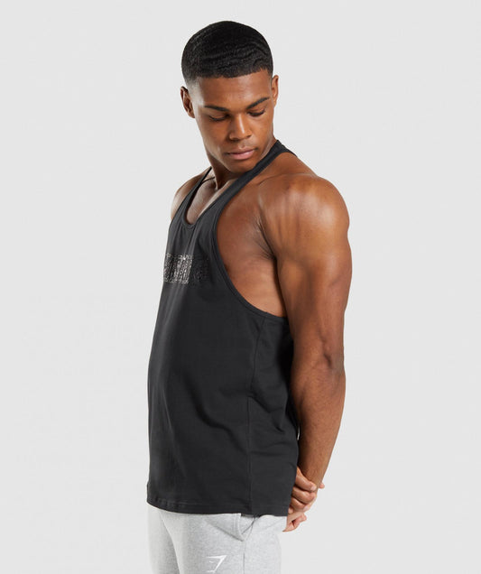 GYMSHARK MICRO PRINT DROP ARM TANK LIGHT GREY PRINT SPORTINĖ PALAIDINĖ