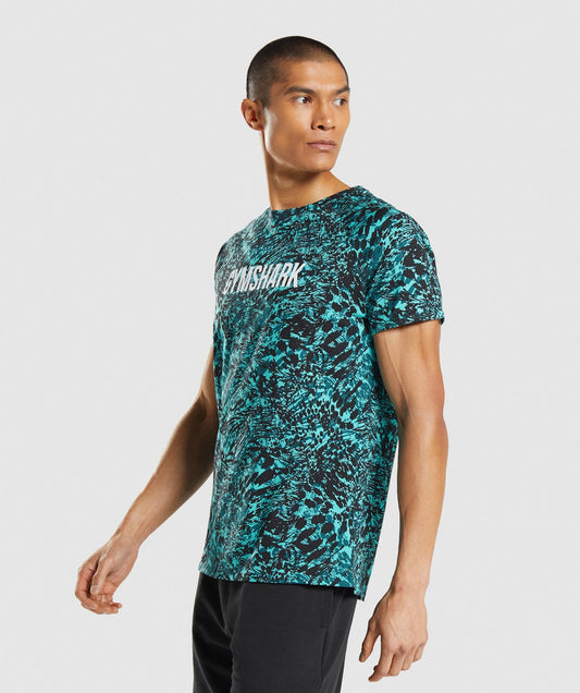 GYMSHARK ANIMAL PRINT INFILL BLUE MARŠKINĖLIAI