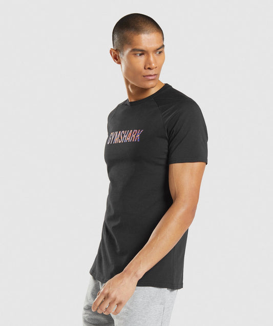 GYMSHARK ANIMAL PRINT INFILL BLACK/MIX MARŠKINĖLIAI