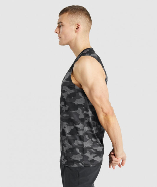 GYMSHARK ARRIVAL SLEEVELESS BLACK PRINTED SPORTINĖ PALAIDINĖ
