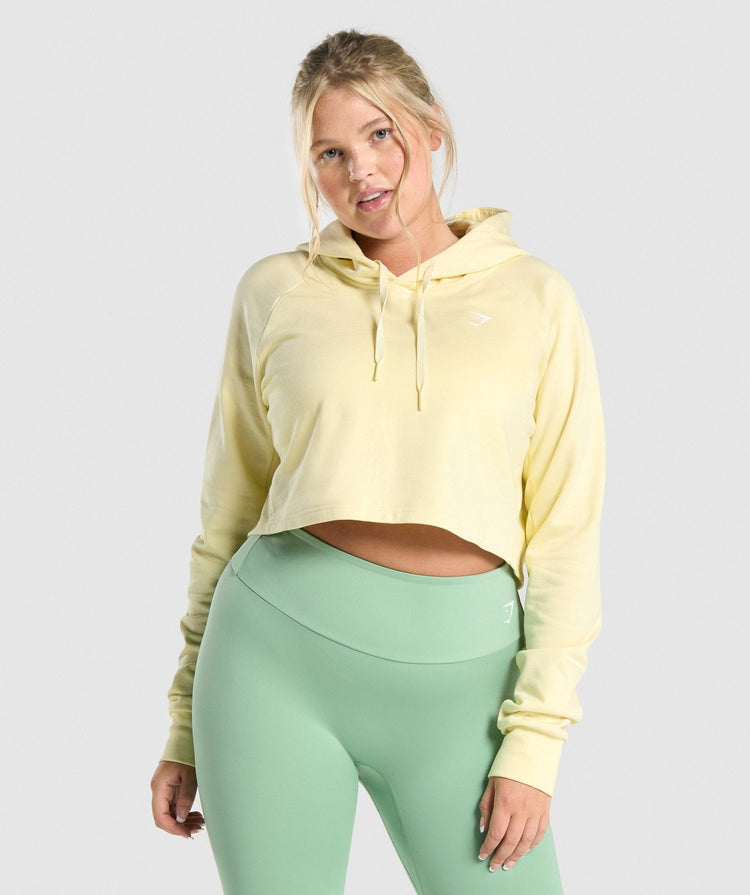 GYMSHARK TRAINING CROPPED HOODIE YELLOW DŽEMPERIS