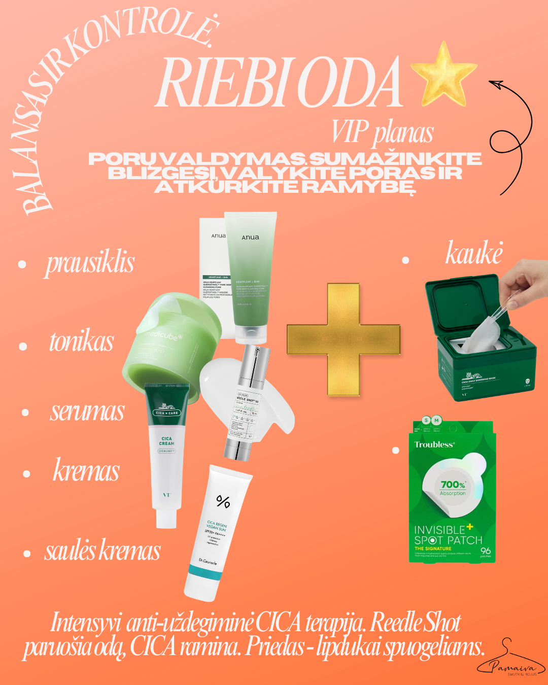 CICA Raminimas: Priemonės su CICA (CICA CREAM, tonikas) ramina uždegimus, mažina paraudimą ir stiprina pažeistą odos barjerą.