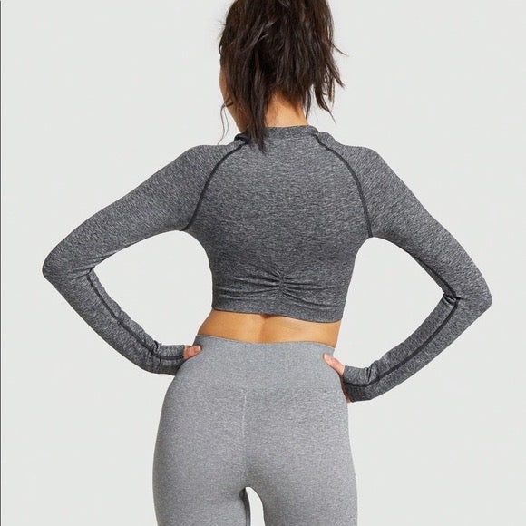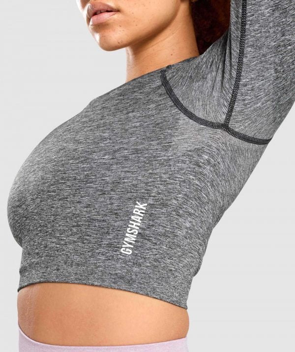 GYMSHARK ADAPT MARL SEAMLESS LONG SLEEVE CROP TOP BLACK SPORTINĖ PALAIDINĖ