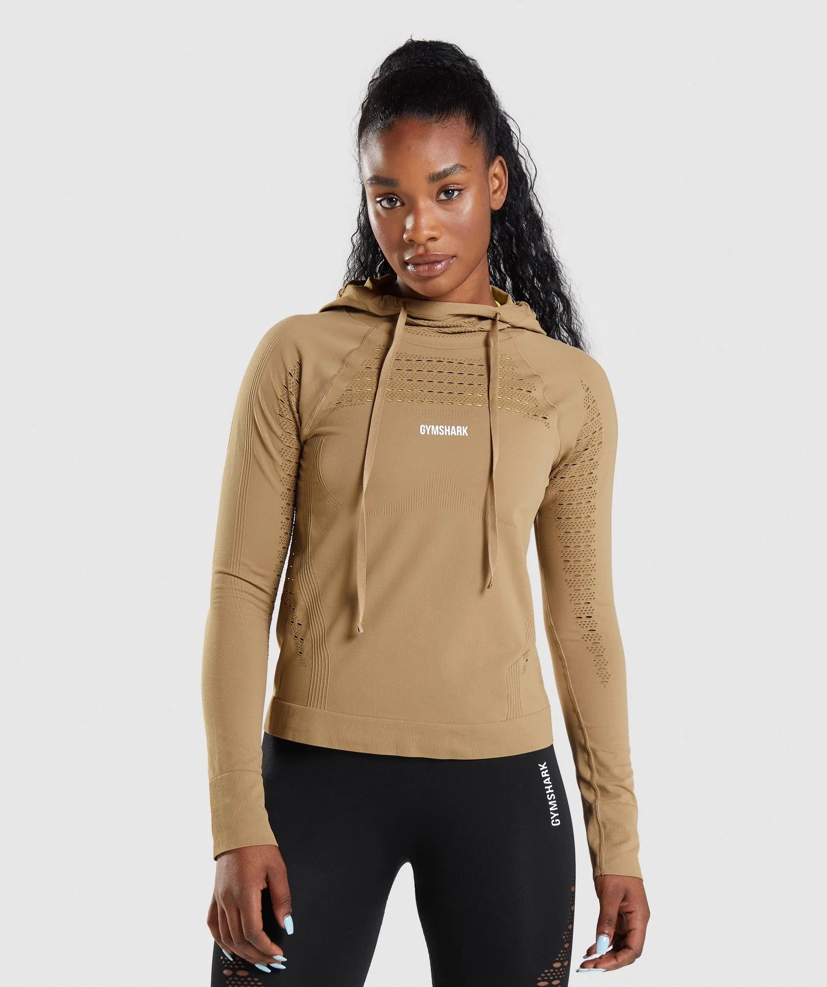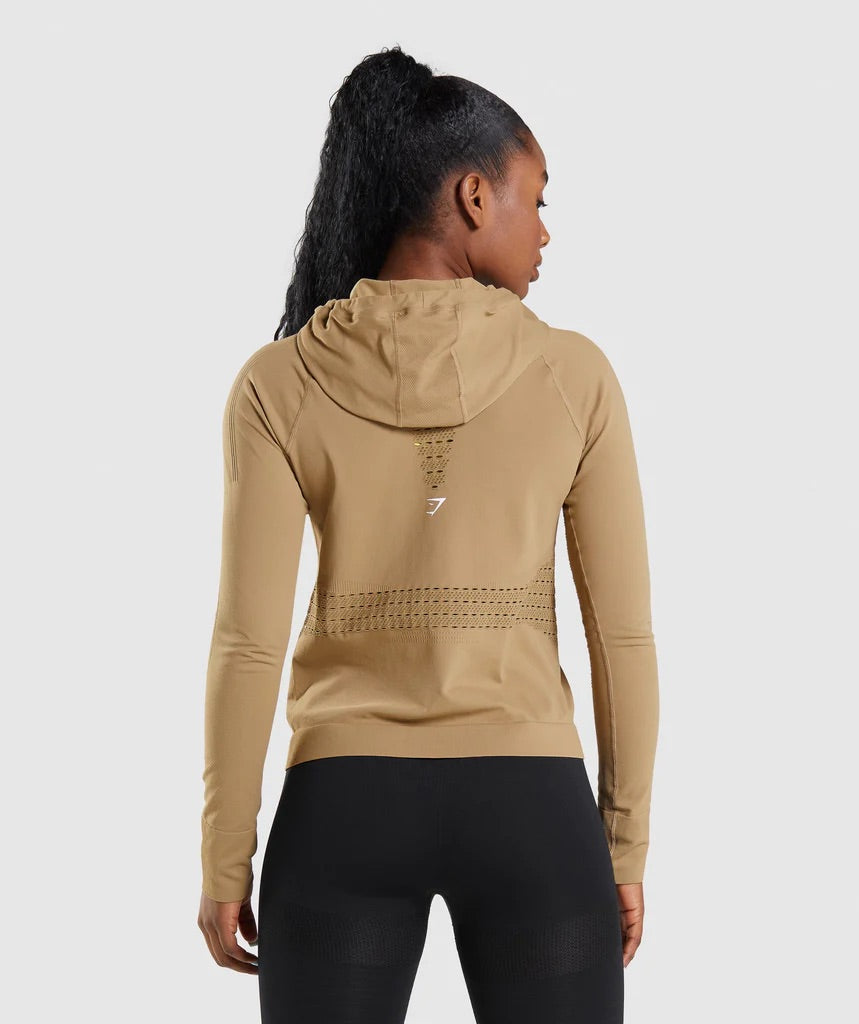 GYMSHARK ENERGY SEAMLESS HOODIE BISCOTTI BROWN SPORTINĖ PALAIDINĖ